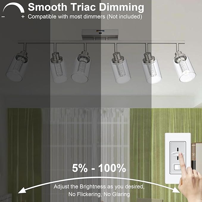 - Multi-Functional Rotatable : Adjustable track head enable 3-in-1 use : ceiling track light, wall-mounted vanity light, or traditional ceiling light. The 6 way track Light fixtures with pivoting track heads can focus them strategically by rotating it 350° horizontally and 90° vertically to create the ultimate lighting
