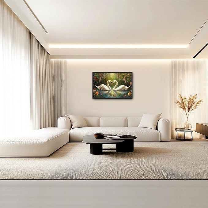 Swans Framed Wall Art for Living Room, Large Lake Loving Swans Canvas Wall Decor, Country Animal Pictures Painting, Natural Landscape Modern Artwork for Bathroom Bedroom 36L'' × 24W''