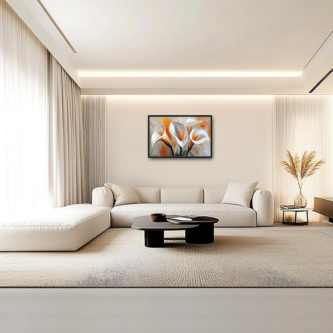 Calla Lily Framed Wall Art for Living Room, Large Calla Flower Canvas Wall Decor, White Florals Pictures Painting, Modern Artwork for Living Room Bedroom 36L'' × 24W''