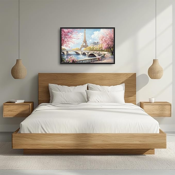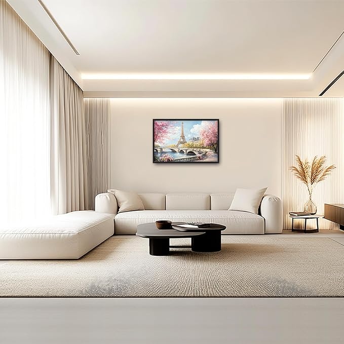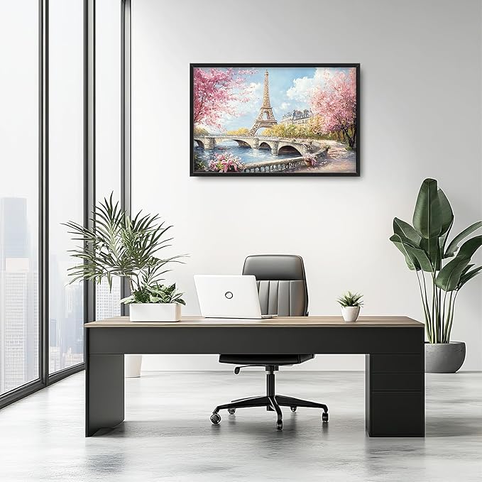 Eiffel Tower Framed Wall Art for Living Room, Large Paris Tower Canvas Wall Decor, Pink Cityscape Pictures Painting, Natural Landscape Modern Artwork for Bathroom Bedroom 36L'' × 24W''