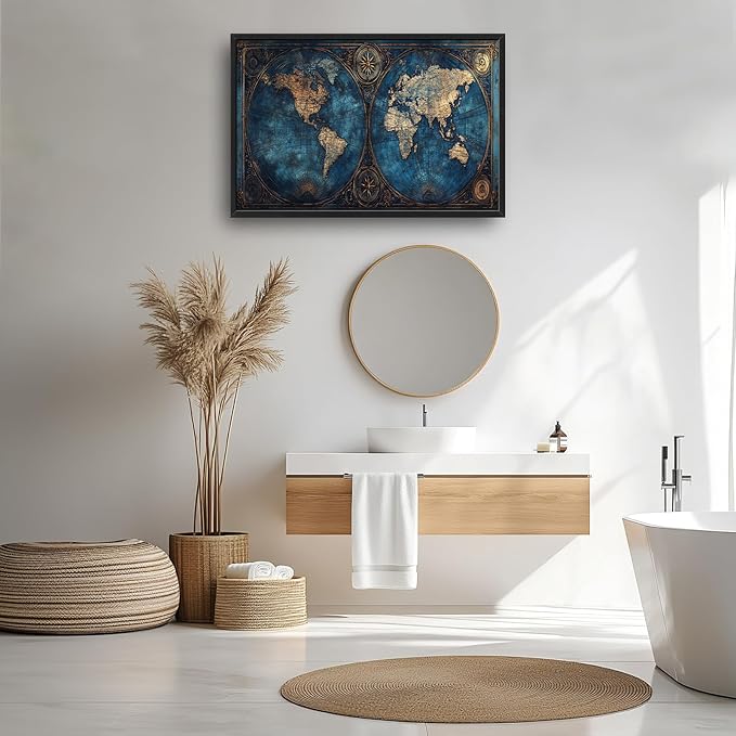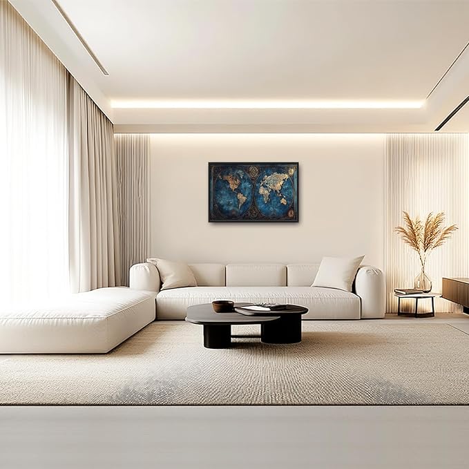 World Map Framed Wall Art for Living Room, Large Map of The World Canvas Wall Decor, Vintage Maps Pictures Painting, Modern Artwork for Office Bathroom Bedroom 36L'' × 24W''