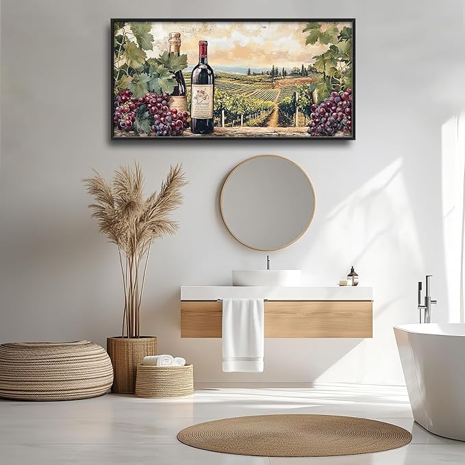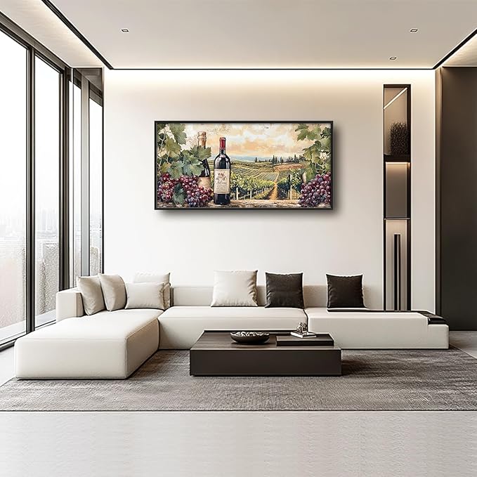 Large Wine Framed Wall Art for Living Room, Large Kitchen Canvas Wall Decor, Vintage Grapes Canvas Pictures Painting, Modern Artwork for Kitchen Bedroom Office 60L'' × 30W''