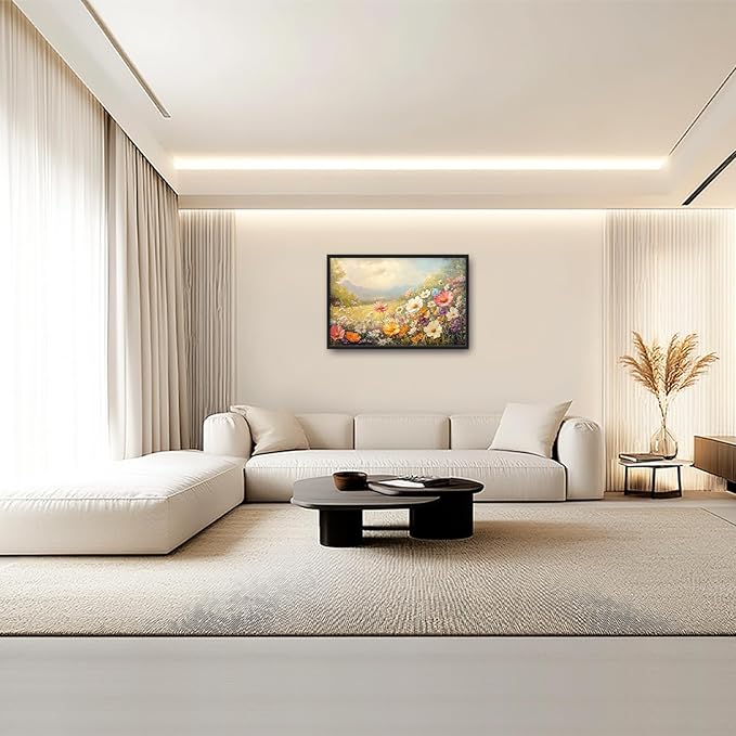 Wildflower Framed Wall Art for Living Room, Large Gesang Flower Canvas Wall Decor, Wildflower Pictures Painting, Modern Landscape Artwork for Bathroom Bedroom 36L'' × 24W''