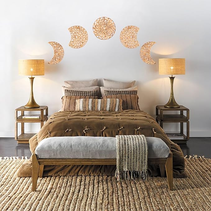 PEMAR Woven Moon Phase Wall Decor - 5-Piece Set of Natural Water Hyacinth Art for Boho & Rustic Homes