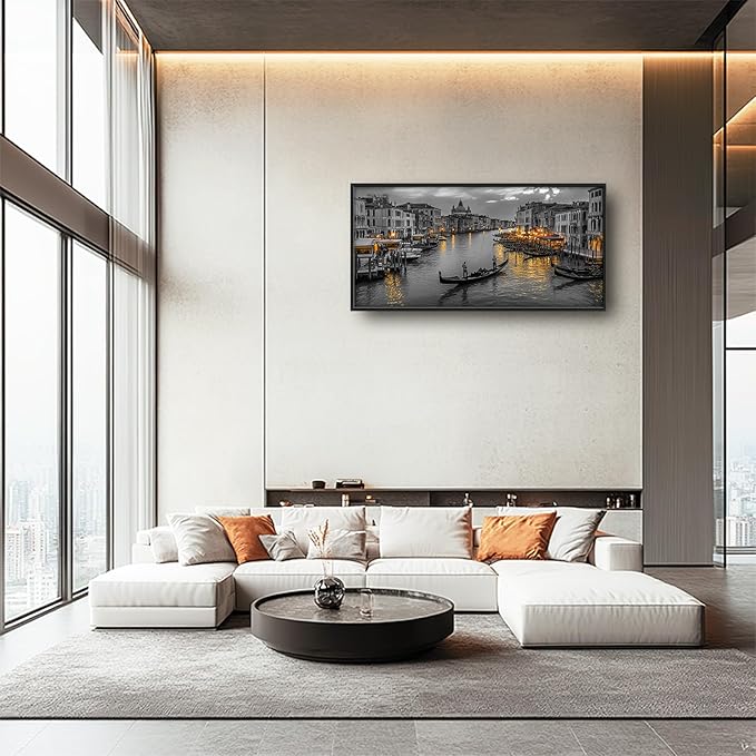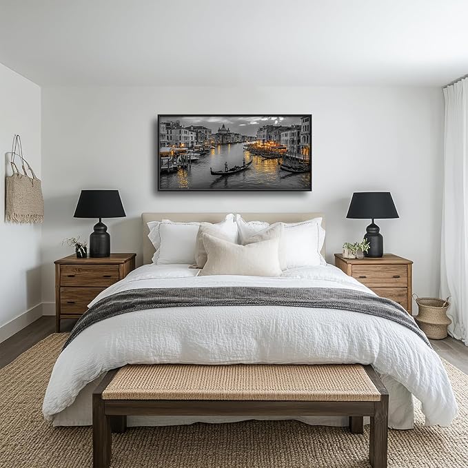 Olivine Italy Large Wall Art, Venice City Pictures Wall Decor, Black and White Painting, Cityscape Canvas Prints, Framed Artwork for Dining Room Living Room Bedroom Bathroom Office Home Decor 60"x30"