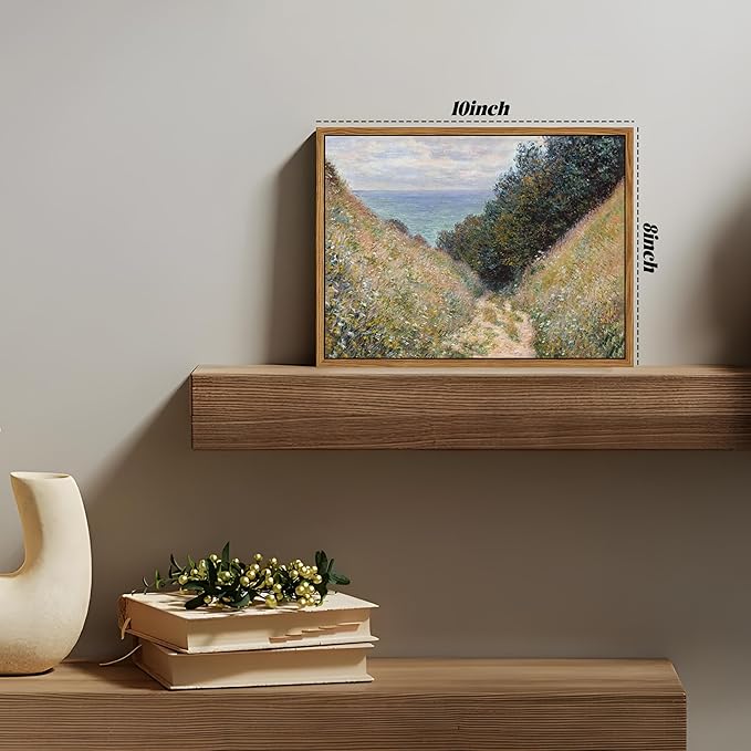 Framed Vintage Monet Wall Art Farmhouse Decor – Impressionist Oil Painting Canvas Prints – Country Landscape Classic Aesthetic Wall Decor for Living Room Bedroom Bathroom – 8''x10''