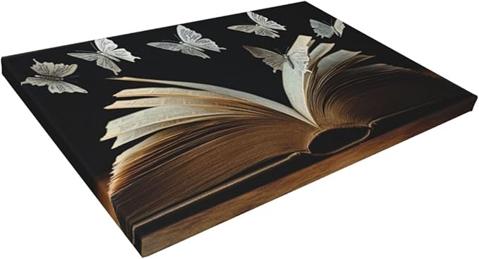 Olivine Butterfly Large Wall Art, Book Pictures Wall Decor, Bookish Butterfly Painting, Reading Nook Canvas Prints, Framed Artwork for Dining Room Living Room Bedroom Library Office Home Decor 36"x24"