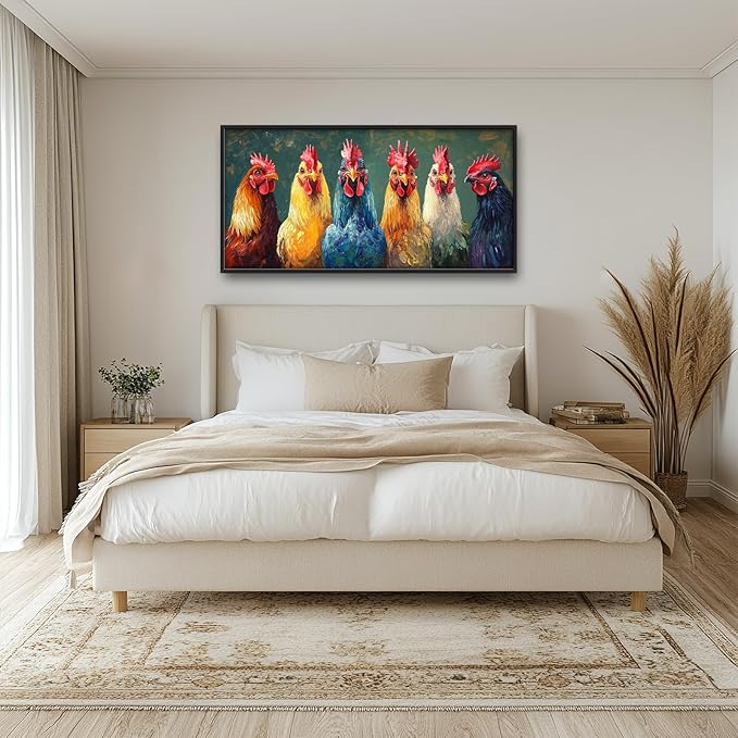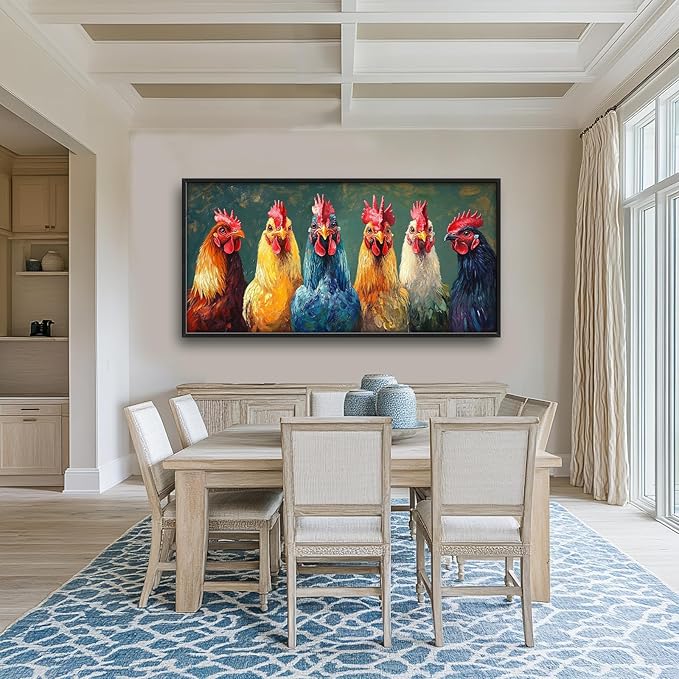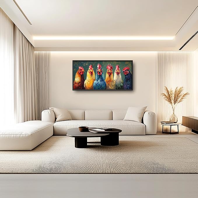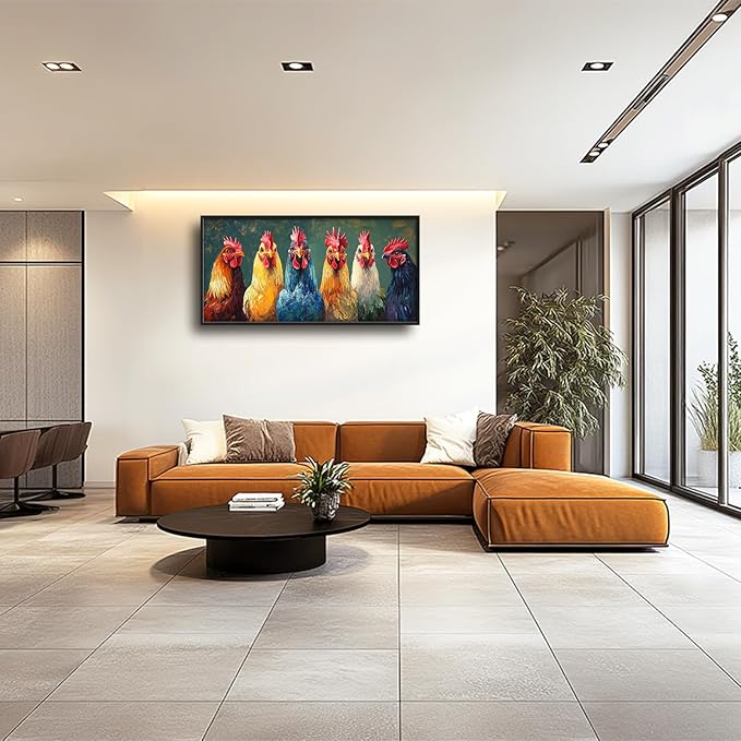 Olivine Rooster Large Wall Art, Farmhouse Rooster Pictures Wall Decor, Vintage Chicken Canvas Prints Painting, Framed Artwork for Dining Room Living Room Bedroom Bathroom Office Home Decor 60"x30"