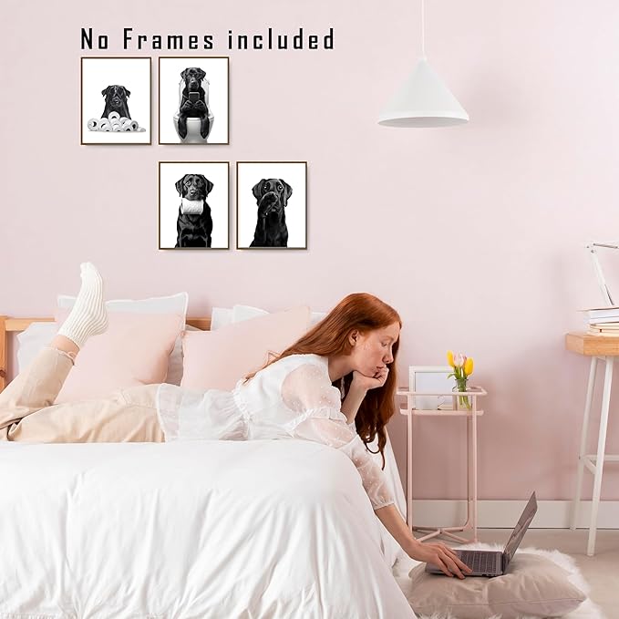 FITIE Funny Black Labrador Retriever Bathroom Wall Art Posters Set of 4, Dog Bathroom Decor, Toilet Humorous Black Lab Dog Canvas Prints Artwork Wall Decor for Bath Wash Room, 8x10 Unframed