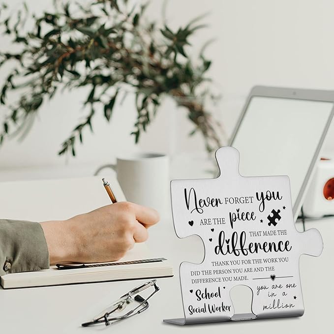 - 【School Social Worker Appreciation Gifts】Engraved with “Never forget you are the piece that made the difference”, this plaque honors the dedication and heart of school social workers.