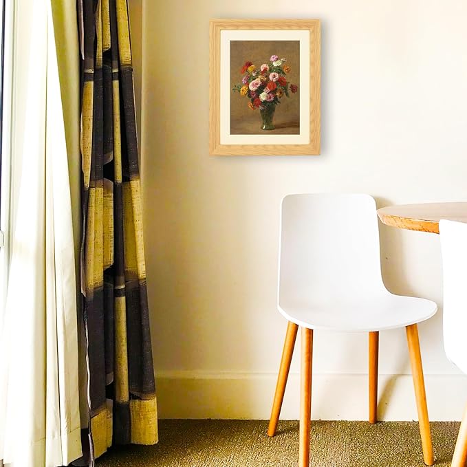 - Vintage Floral Still Life with Elegant Charm Featuring a lush zinnia bouquet in full bloom, this 13x16 inch vintage-style wall art evokes the elegance of classic botanical painting—perfect for French country walls, romantic interiors, or vintage gallery displays.