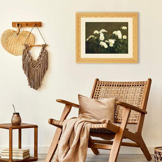 - Faux Wood Frame with Oakgrain Finish: The PS frame mimics natural oak with a matte embossed texture. Combined with the mat, it offers a timeless frame for romantic floral prints and vintage-inspired still life scenes.