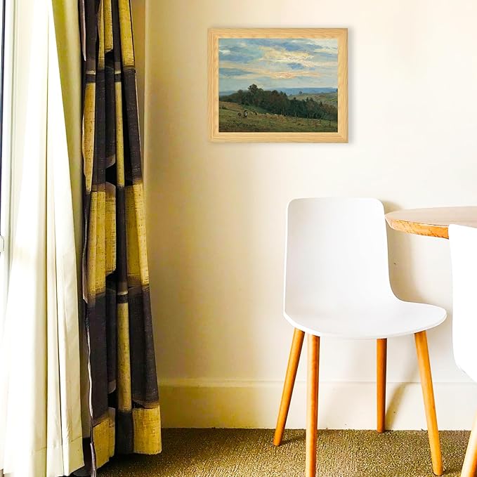 - Warm Pastoral Scene in Golden Hour Light: This 13x16 inch framed canvas features a tranquil countryside field under a golden sky, perfect for enhancing rustic bedrooms, farmhouse nooks, or cottage-style reading areas.