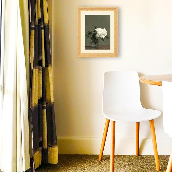 - Quiet Elegance with Mat Board Framing: This 13x16 canvas print showcases a white rose bouquet in a clear glass vessel, paired with a cream-colored mat board that enhances its softness—ideal for French cottage or romantic botanical spaces.