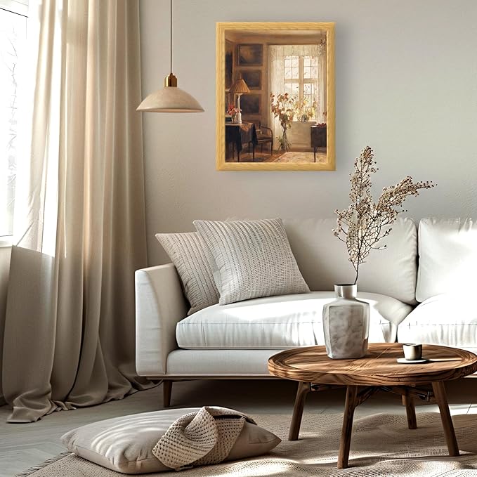 Brivoria Framed Canvas Wall Art Vintage Decor, Scandinavian Interior Artwork with Sunlit Window, Indoor Greenery and Golden Autumn Glow for Living Room Bedroom Fireplace or Gallery Display, 16"x20"