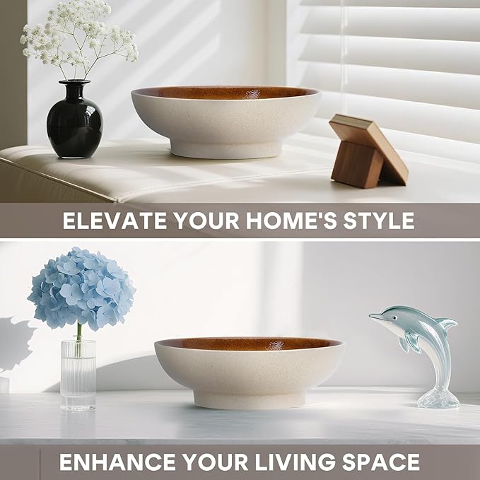 - Home Decor:The centerpiece bowl is ideal for home decor,modern or bohemian style kitchen decor,entryway table,living room,dining area,coffee table,etc,The elevated footed bowl adds an elegance as a decor bowl.