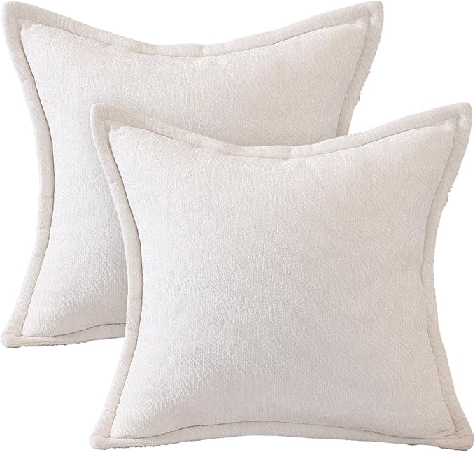 AVOIN colorlife White Chenille Throw Pillow Covers 18 x 18 Inch Set of 2, Soft Cozy Bound Edge Design Home Decor Cushion Case for Living Room Bed Sofa Coach