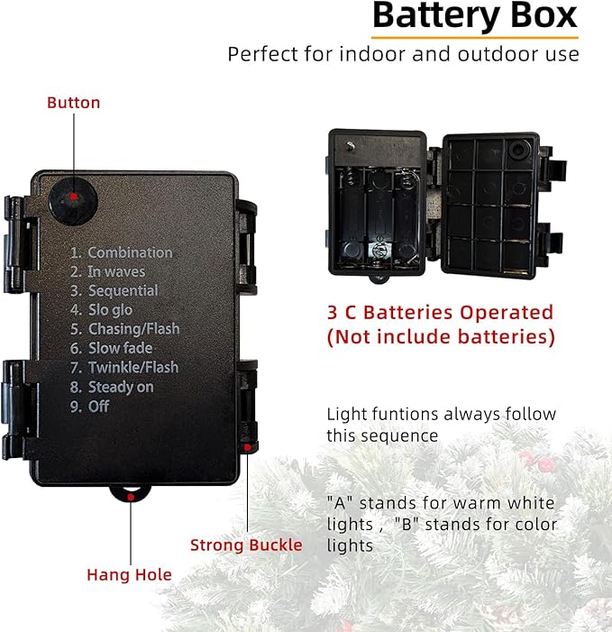 - 【30 LED Lights with Festive Modes】 Brighter than competitors—featuring 8 light effects (twinkle/fade/steady) and a 6h on/18h off auto-cycle timer. Runs on 3 AA batteries (not included). IP44 waterproof for worry-free outdoor use.