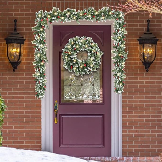 - 【All-Weather Indoor/Outdoor Versatility】 Weather-resistant construction withstands winter elements. Hang on front doors, drape over mantels, or use as tabletop decor for holiday gatherings—it adapts to any indoor/outdoor space.