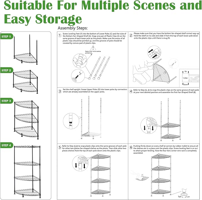 - 【Ventilated Wire Shelving – Easy to Clean & Durable】 The sturdy wire racks prevent dust buildup, allow airflow (great for pantry items or damp areas), and resist stains/rust. Wipe clean in seconds—no hassle!