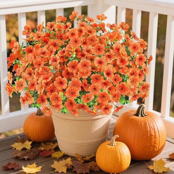 - Realistic Artificial Flowers - Fall Flowers are made of PE plastic(ECO-Friendly) and high-quality silk cloth,100% SAFE.Each flower come as close to real as can be, offer true-to-life petal and foliage textures.Honestly unless you stop and touch them people will think they're real,they even fooled the bees