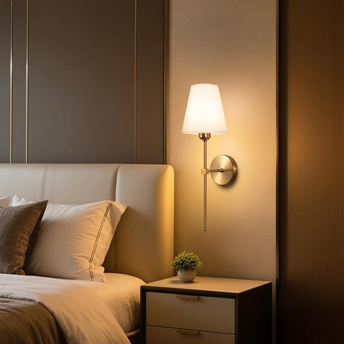 - Style : Wireless Wall Sconce with Linen Fabric Shade