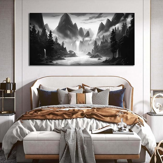 - 【Canvas Wall Art Size】Theme "Black And White Mountain" This canvas panel is 29 x 58 inch(73cmx147cm)One piece set.