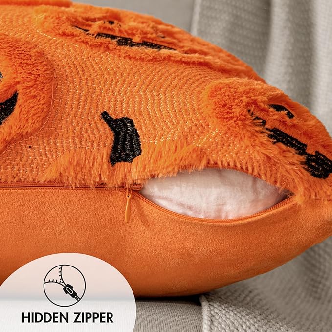 - Unique Design:Adorned with a unique embroidered pumpkin pattern, these pillow covers showcase excellent workmanship with tightly sewn zigzag over-lock stitches and no loose threads. The luxurious faux fur texture adds a modern and elegant touch to any space.