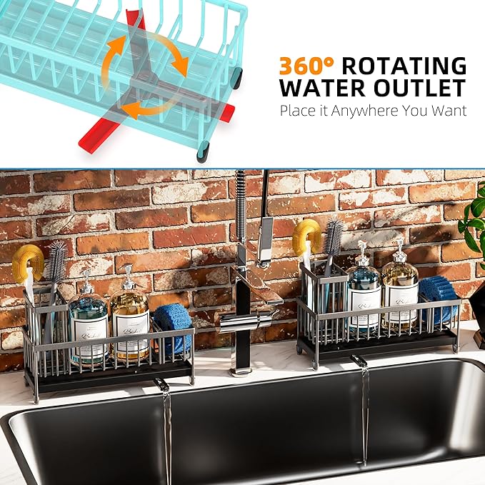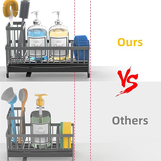 - 【BRUSH STORAGE RACK】The higher brush storage rack allows your brushes to be better stored without falling. The kitchen sink caddy can be used after receiving it, no installation is required, and it is widely used on sink countertops or bathrooms. It is a satisfying gift.