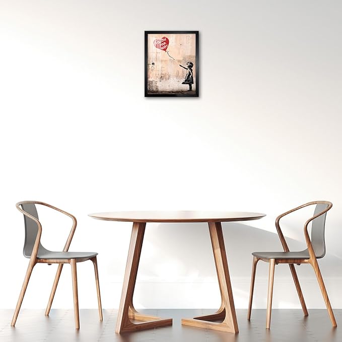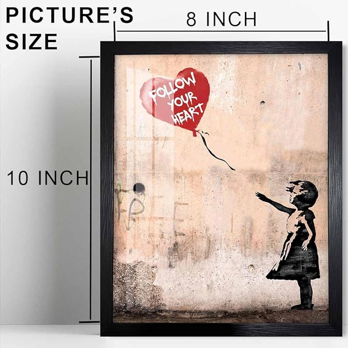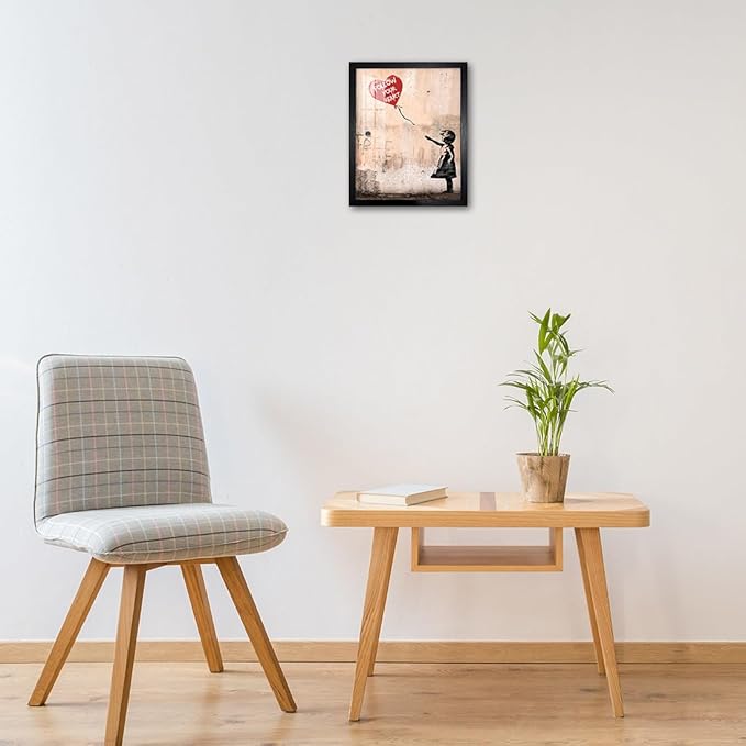 Biufo Banksy Canvas Wall Art Decor, Graffiti Print Picture Pop Street Art, Girl with Balloon Poster, Bedroom Home Wall Decor (10L x 8W, Framed)