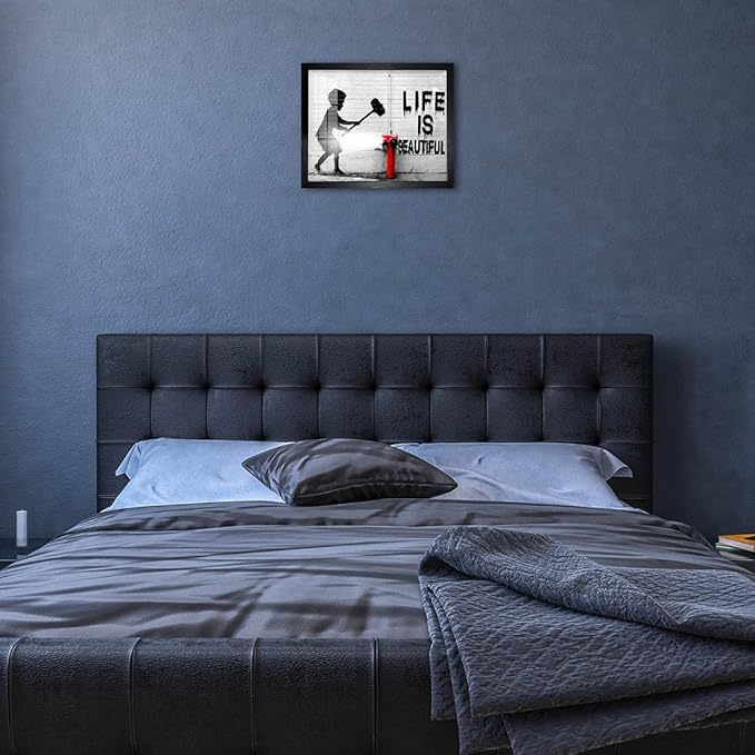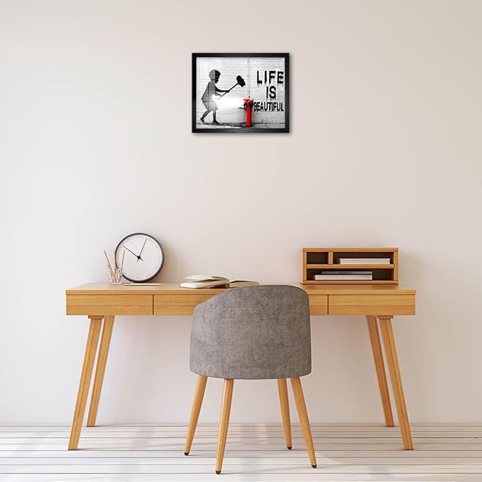 Biufo Banksy Canvas Wall Art Poster Graffiti Print Picture Pop Street Art Decor for Home Bedroom Living Room (10L x 8W, Framed)
