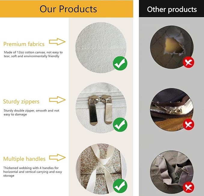 - Premium materials: Made of natural and degradable cotton fabric, the 12oz canvas will not wear out after long-term use, and it is equipped with a sturdy double zipper for easy use. It is the first choice for storing clothes in your wardrobe.
