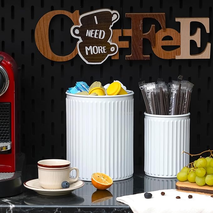 - DUAL-SIZE DESIGN: The Set includes two metal utensil crocks - the large caddy measures 7.28" tall and 5.91" wide, and the small one measures 5.4" tall and 4" wide for versatile storage options
