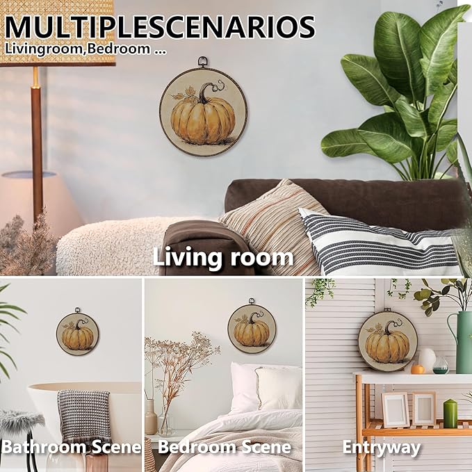 XNXLDYLH Vintage Fall Pumpkin Round Framed Wall Art Decor, Rustic Thanksgiving Farmhouse Hanging Wall Decor Decorations, Autumn Fall Canvas Prints Wall Art Paintings for Bedroom Living Room, 10x10Inch