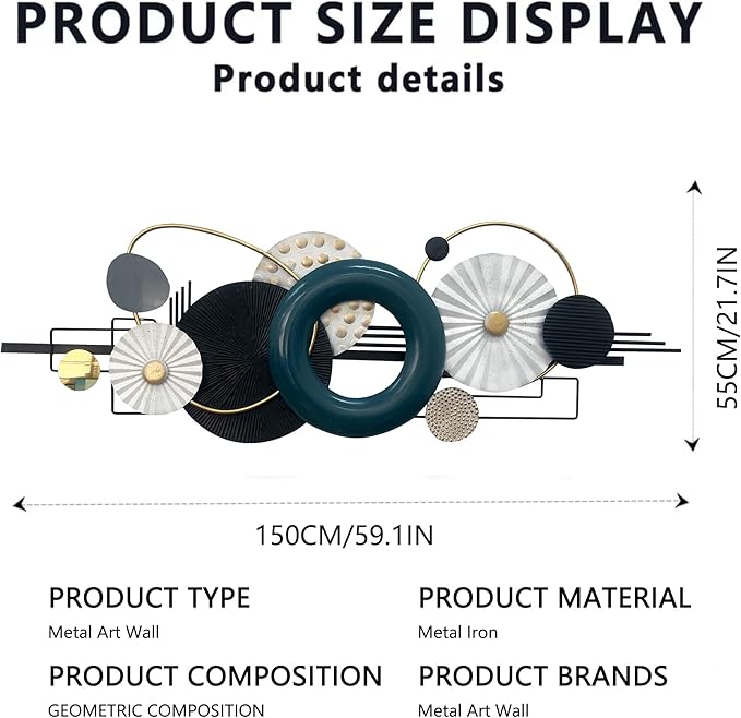 - MODERN DESIGN: Contemporary wall sculpture featuring geometric circles and metallic accents in black, white, blue, and gold colors, perfect for adding sophistication to your living space