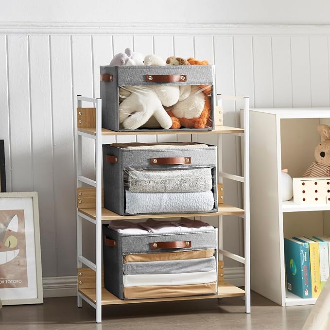 - Dual-Function Clear Window Design: Effortlessly identify contents at a glance with the front PVC clear window—no more rummaging through stacks to find what you need! The back side of storage basket retains a classic and non-visual design, letting you choose between quick visibility or discreet storage. Perfect for organizing closets, shelves, or kids’ rooms while keeping spaces tidy and stylish.