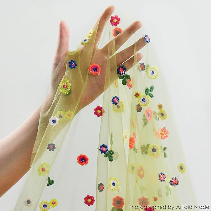 Artoid Mode Green Embroidery Daisy Gauze Table Runner 120 Inch 10FT, Seasonal Sheer Kitchen Dining Holiday Wedding Birthday Table Decor for Home Party