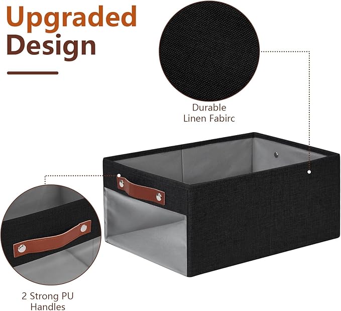 - Premium Linen & Sturdy Cardboard Construction: The storage bins are built to last with a durable blend of high-quality linen fabric and thick, reinforced cardboard. The precision-cut design ensures a polished look, while the robust materials resist sagging, tearing, or warping—ideal for storing heavy items. These closet organizers elevate any space while standing up to daily use.