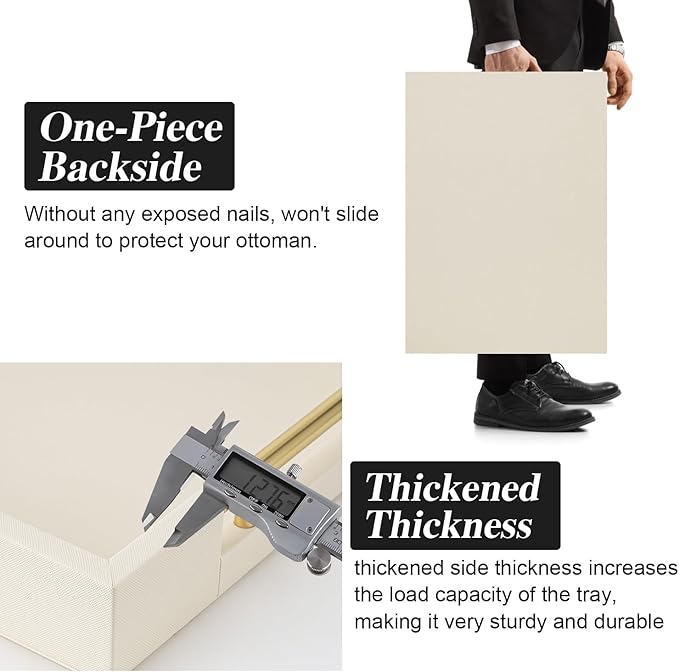 - Durable Leather Tray: Our trays are exquisitely crafted with high-end gold handles,The structure is made of 12mm thick medium density fiberboard, which is very sturdy and lightweight.The surface is made of gorgeous pearl cross grain leather, rich in rich textures, which looks very gorgeous and soft and smooth, and will not hook onto the surface of your footstool or other furniture.