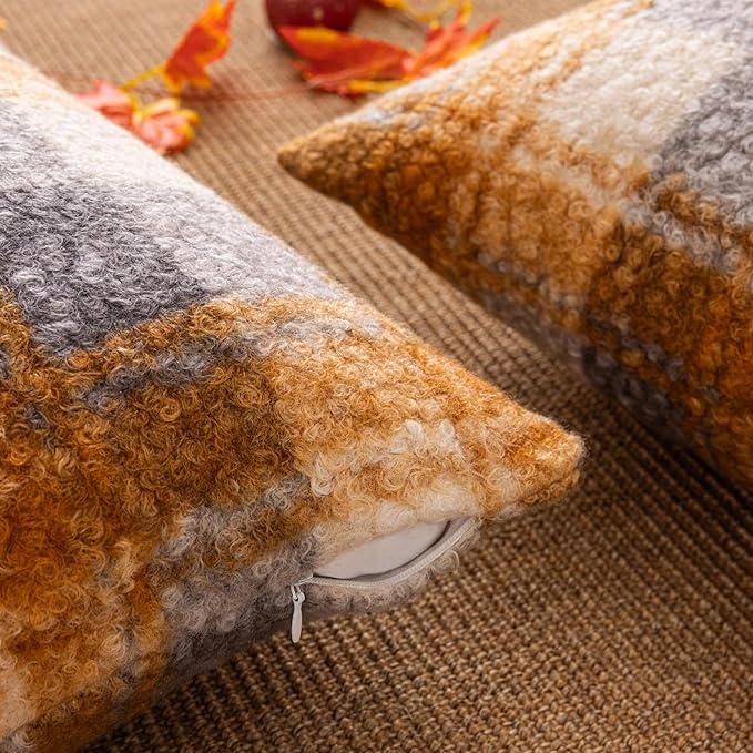 - Hidden Zipper: Neutral pillow covers Upgraded hidden zipper design effectively improves durability and comfort, and the plaid with orange brown color can create a fall atmosphere for you.