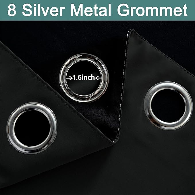 - PACKAGE MADE:1 panel per package. Each Lined Curtain measures 52" wide x 84" long. 8 Silvery Grommets per panel. This silvery grommet (1.6 inch inner diameter) fits many rods. Easy to hang and smooth to slide. The simple design gives people a sense of ease.