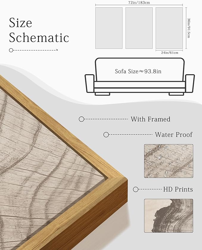 - Sturdy Frame & Easy Installation - Each 24x36 inch wood rustic abstract frame artwork has a direct hanging groove on the back and is equipped with traceless nails, ready to hang.