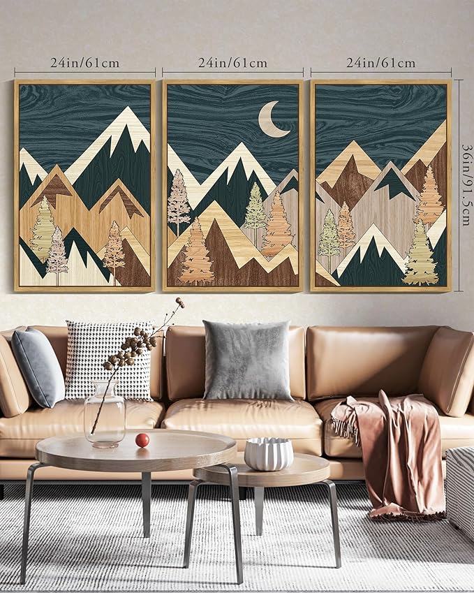 - Sturdy Frame & Easy Installation - Each 24x36 inch mountain frame artwork has a direct hanging groove on the back and is equipped with traceless nails, ready to hang.