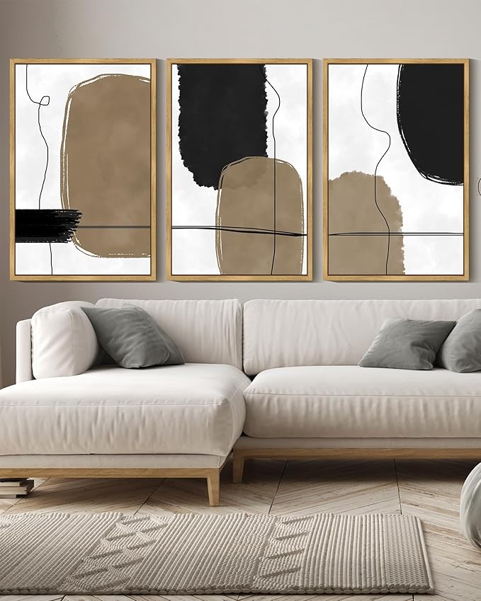 - Neutral Abstract Art - Featuring minimalist line designs and textured beige tones, this black abstract framed wall art draws inspiration from mid-century modern aesthetics, adding timeless elegance to any space.