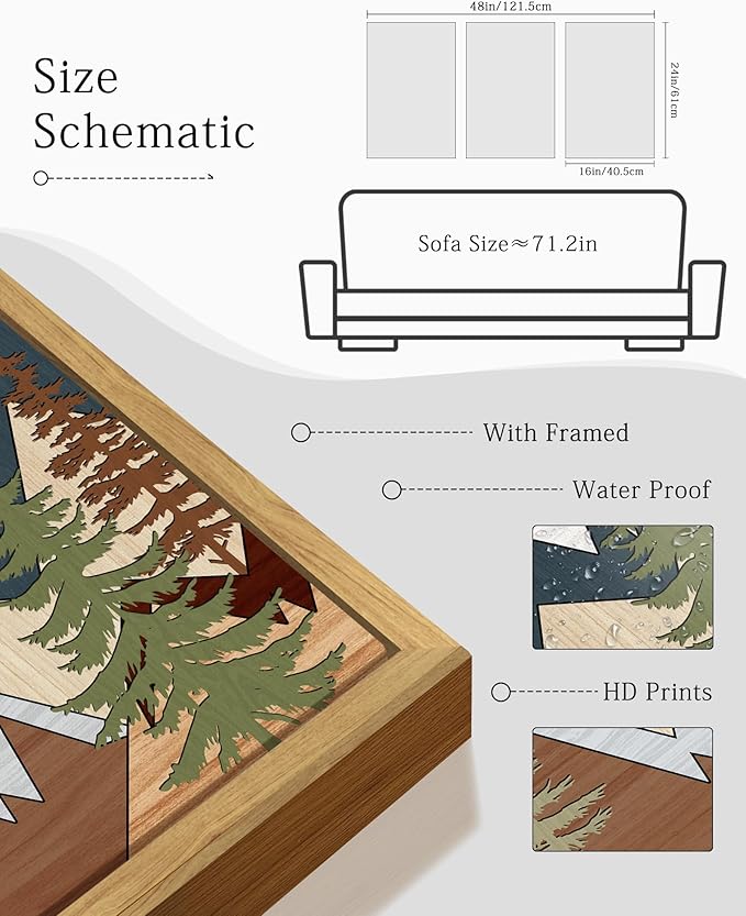 - Sturdy Frame & Easy Installation - Each 16x24 inch mountain frame artwork has a direct hanging groove on the back and is equipped with traceless nails, ready to hang.