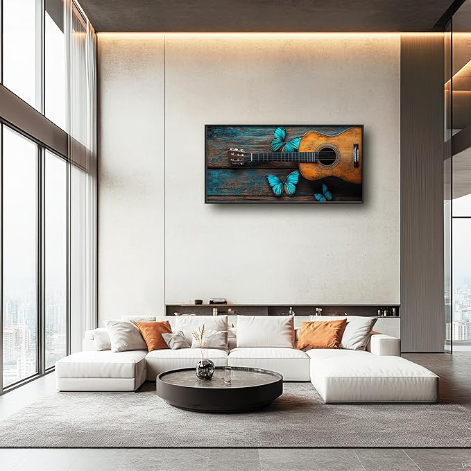 Olivine Music Wall Art, Guitar Pictures Wall Decor, Butterfly Painting, Vintage Musical Instruments Canvas Prints, Framed Artwork for Bathroom Bedroom Living Room Office Home Decoration 60"x30"