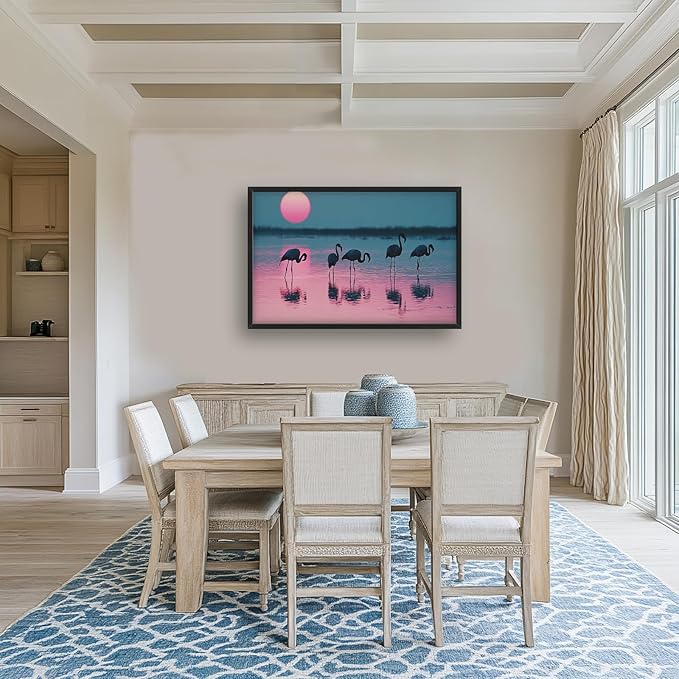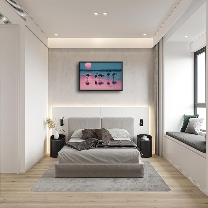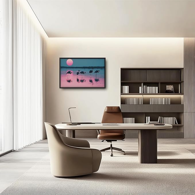 Olivine Flamingo Wall Art, Sunset Pictures Wall Decor, Beach Painting, Tropical Animal Canvas Prints, Framed Artwork for Bathroom Bedroom Living Room Office Home Decoration 36"x24"