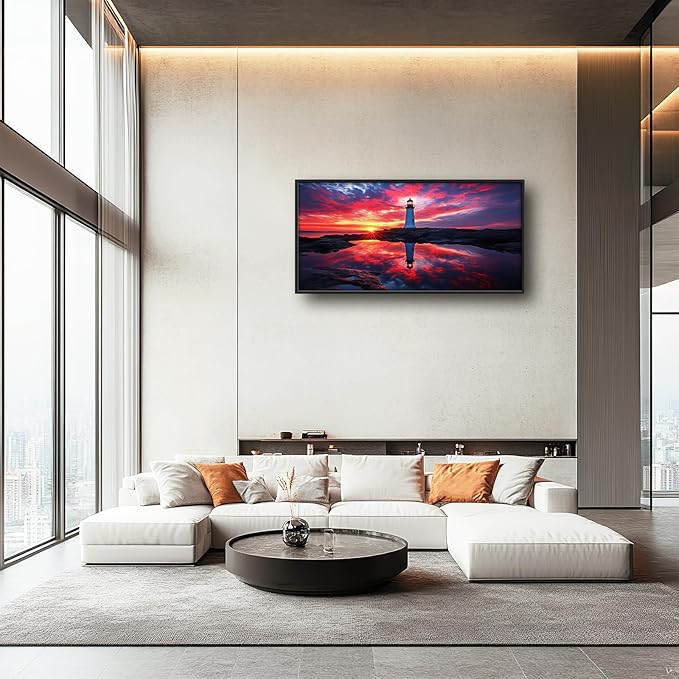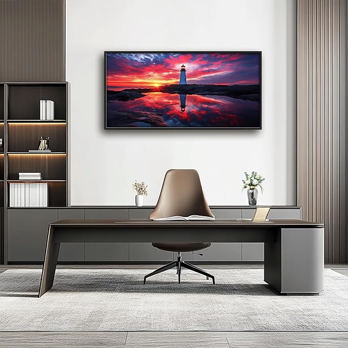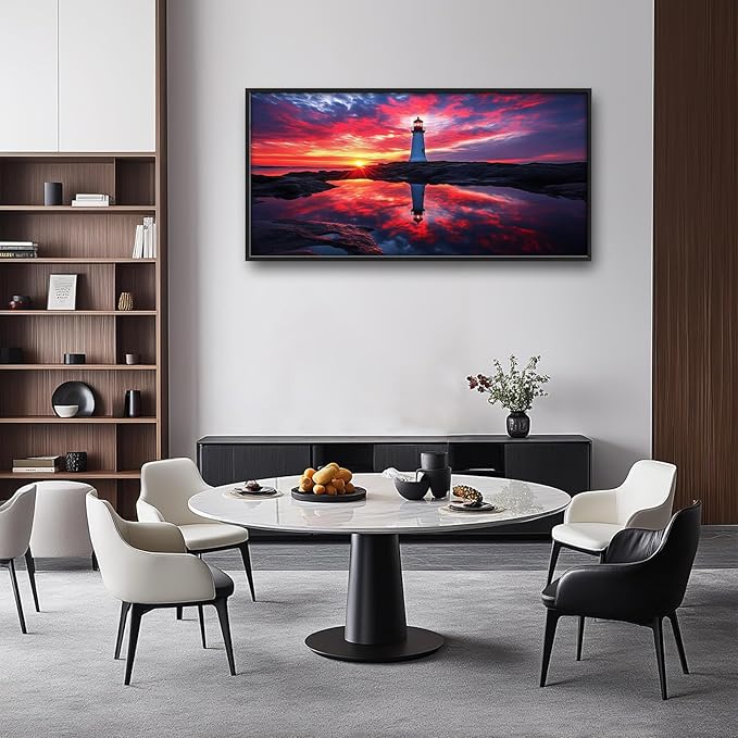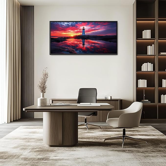 Olivine Lighthouse Wall Art, Nautical Coastal Pictures Wall Decor, Beach Sunset Paintings, Ocean Canvas Prints, Framed Artwork for Bathroom Bedroom Living Room Office Home Decoration 60"x30"