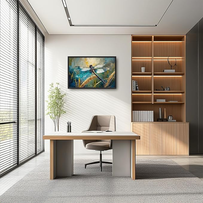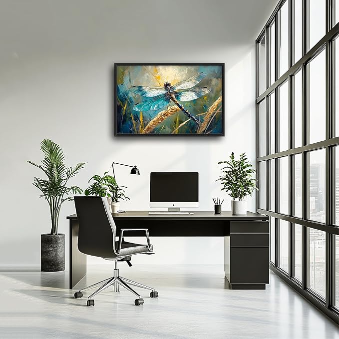 Olivine Dragonfly Wall Art, Vintage Dragonfly Pictures Wall Decor, Nature Painting, Insect Canvas Prints, Framed Artwork for Bathroom Bedroom Living Room Office Home Decoration 36"x24"