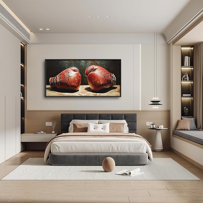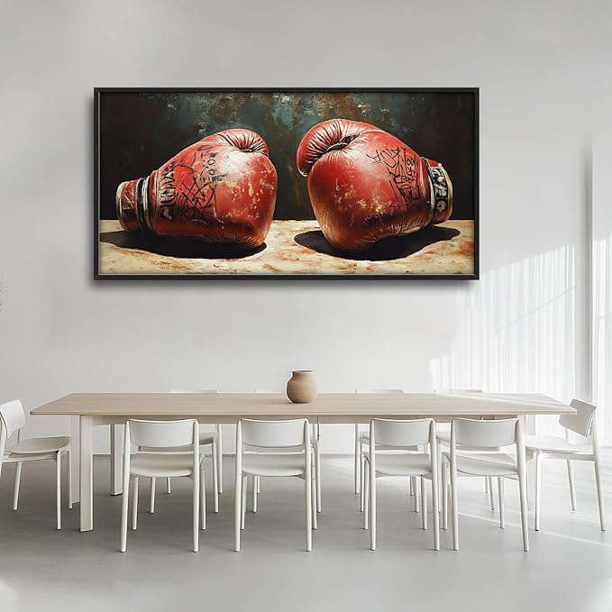 Olivine Sports Wall Art, Boxing Wall Decor, Vintage Boxing Gloves Painting, Graffiti Canvas Prints, Framed Artwork for Bathroom Bedroom Living Room Office Home Decoration 60"x30"